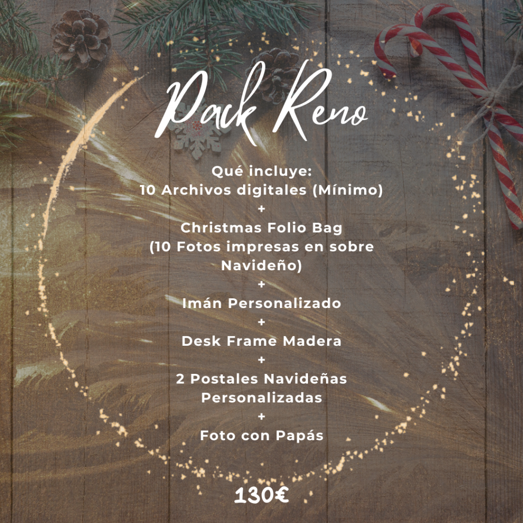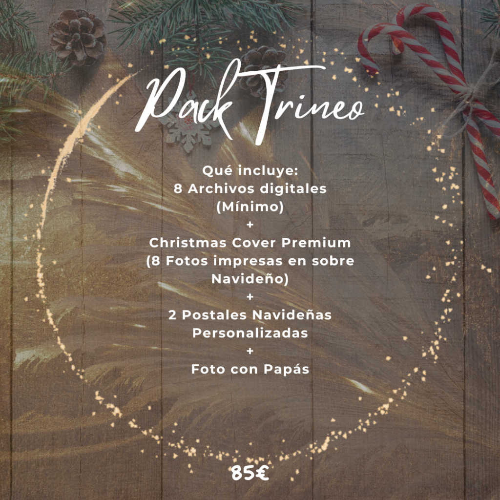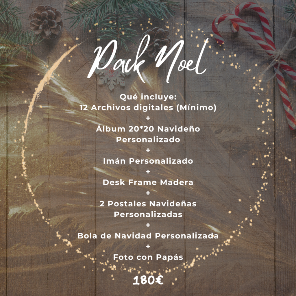 Álbum 20×20 Navideño personalizado: Álbum de impresión digital, con 6 pliegos (12 páginas) con las mejores fotos de la sesión, y acabado exterior personalizado con temática navideña: